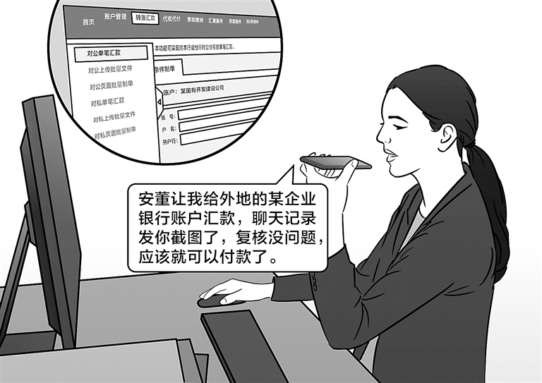 黄上级领导相信出现讯息,在未向副董事长福田上级领导劈面或德律风确认、且未先见一点予以审核的证件的情况下下,私行向外埠机构信用社帐户提倡、数据录入网银造成,并将谈天群内的载图接收给该公司的管帐华上级领导(另案应急处置),提起其为止核查支付。